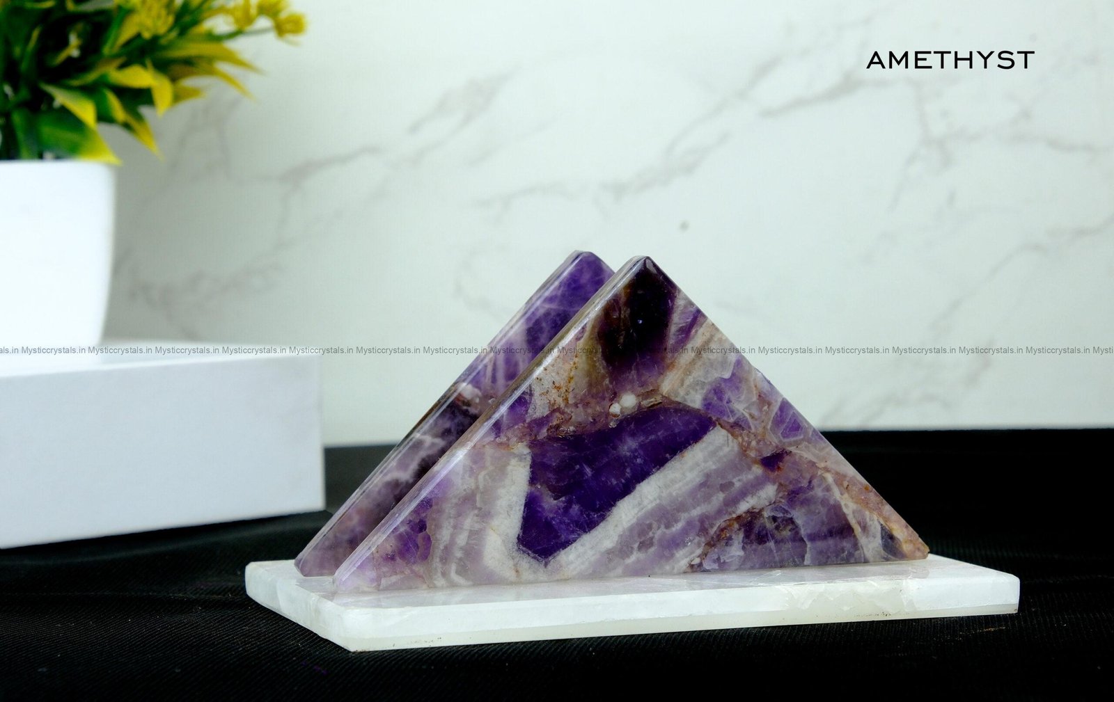 Amethyst is known for its peaceful and relaxing energy, making your space feel more calm and positive. The purple color gives a rich and premium look, perfect for both daily use and special occasions.