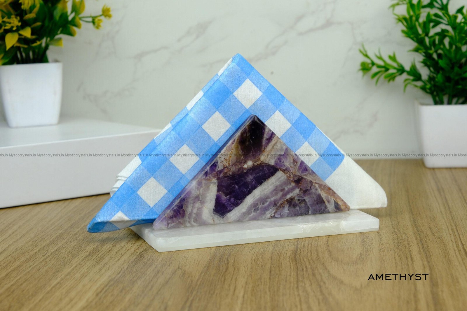 Add a beautiful and calm touch to your dining table with this Amethyst Crystal Napkin Holder. Made from natural amethyst stone, it not only holds your napkins neatly but also looks very stylish.