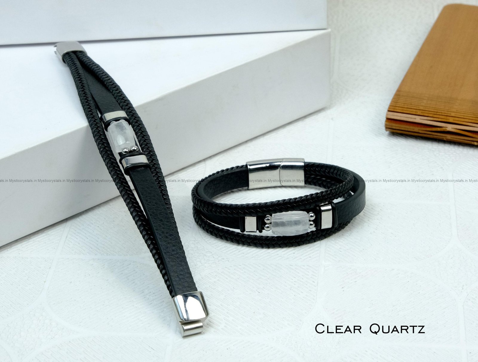 Be the first to review “Clear Quartz Leather Strap Bracelet” Cancel reply
