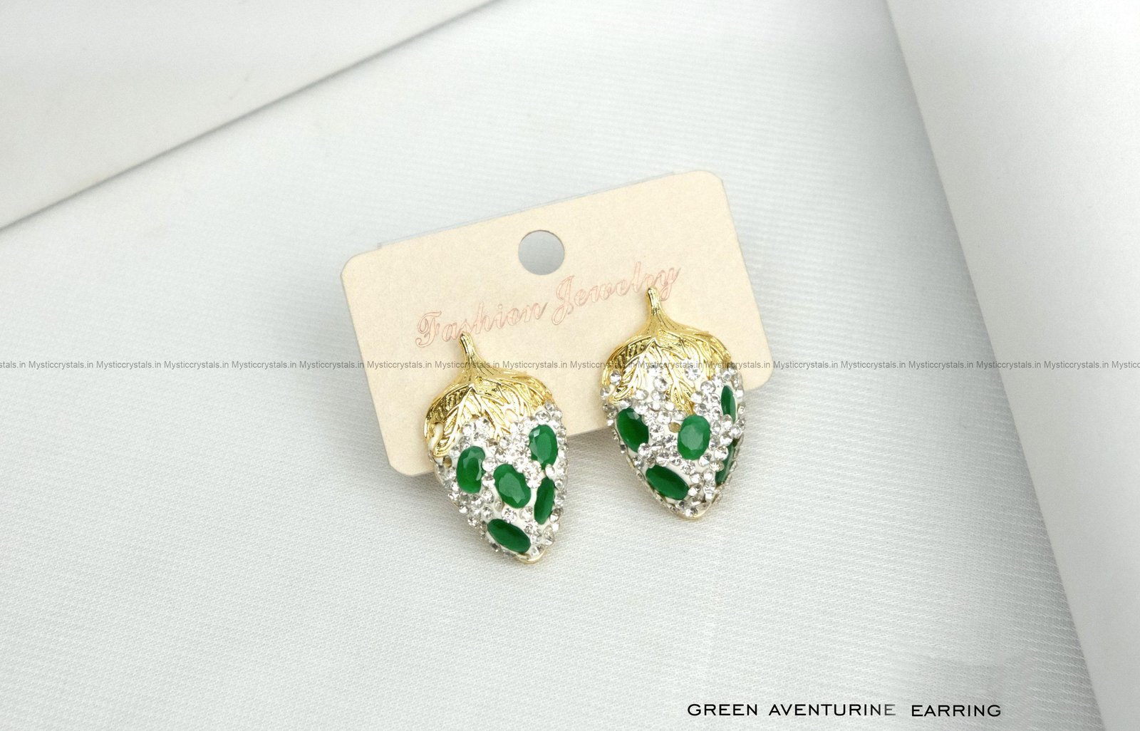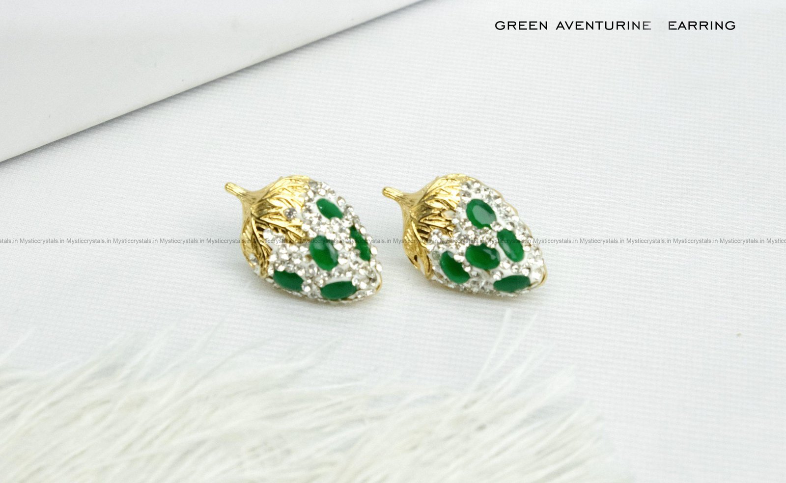Bring good luck with these Green Aventurine Earrings. These earrings feature natural green aventurine stones set in a gold-toned design with sparkling crystals. The rich green color adds a fresh and elegant look, perfect for festive wear, parties, or classy daily outfits. Green Aventurine is known as the “stone of good luck” — it is believed to attract success, confidence, and positive energy.