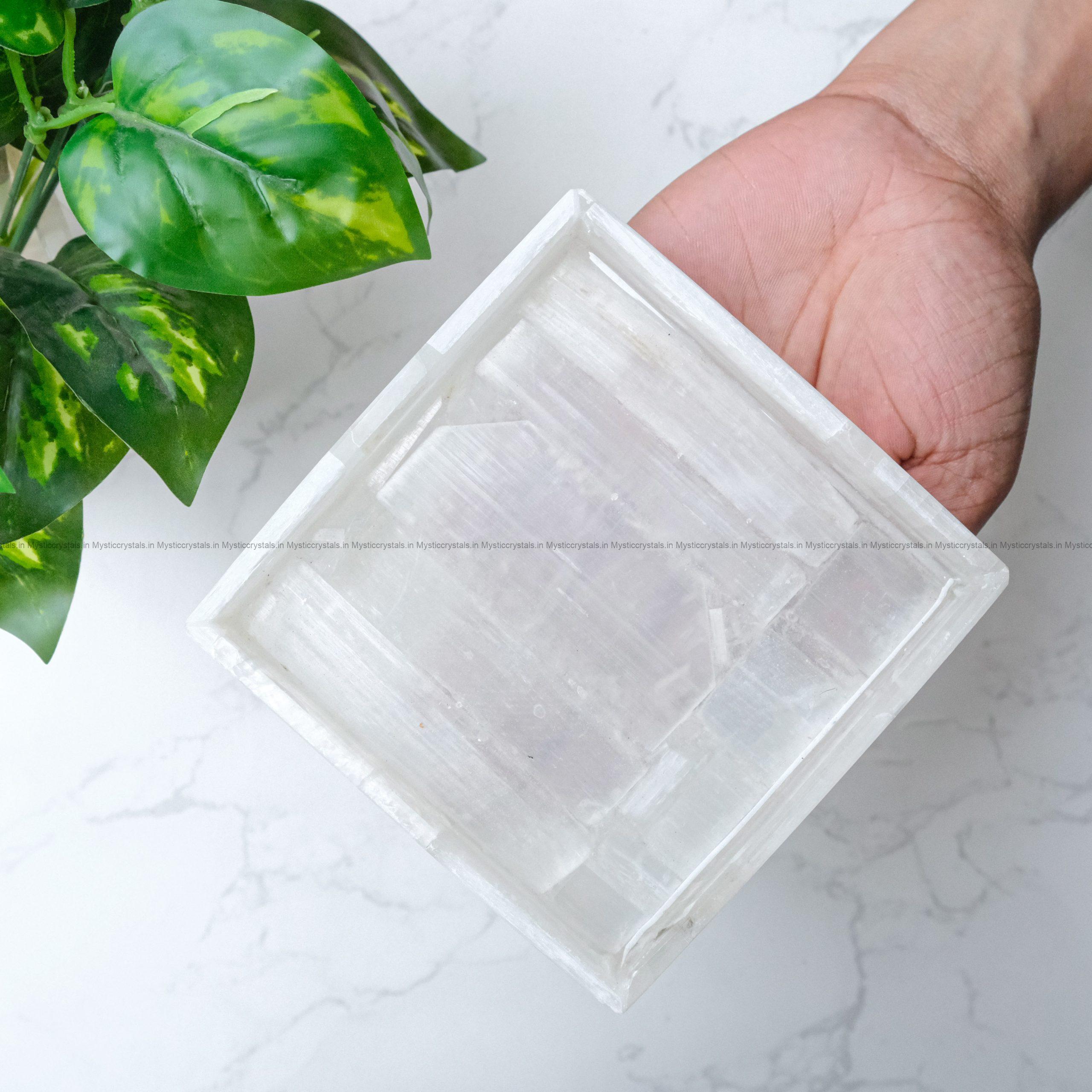 - Selenite is a soft and delicate crystal made of Calcium Sulfate Dihydrate (CaSO₄·2H₂O). it can get damaged or dissolve when exposed to water or moisture for a long duration of time. Please avoid soaking or cleansing Selenite with water. Instead, use dry methods like smudging or sound cleansing to maintain its energy.