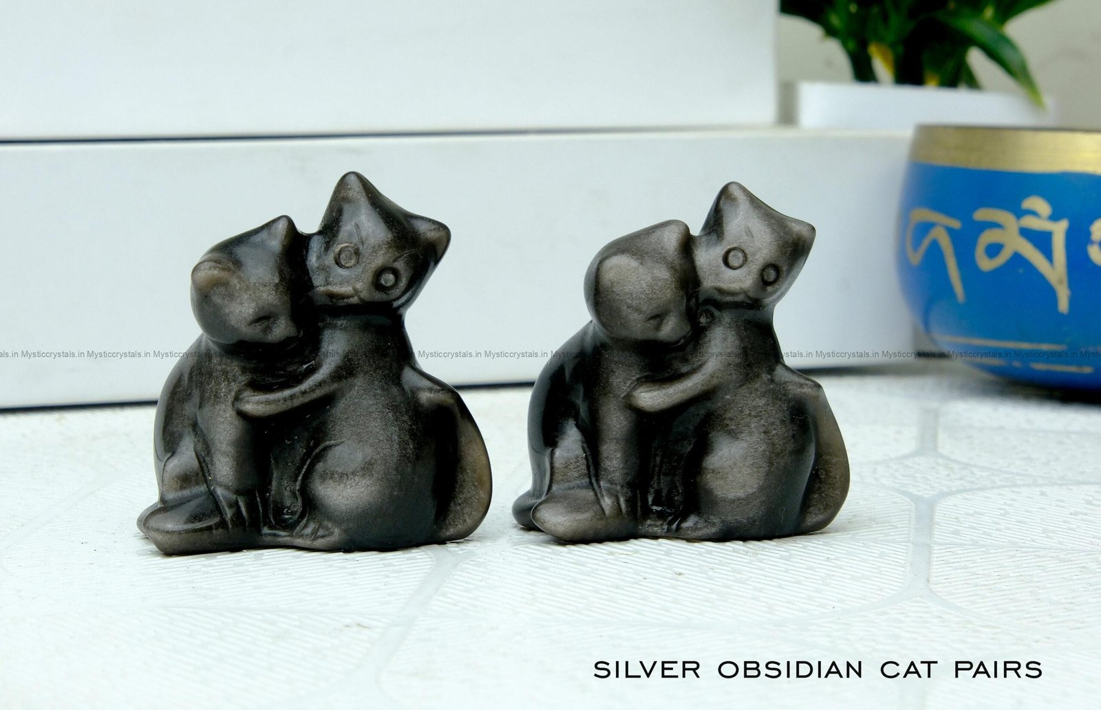 Be the first to review “Silver Obsidian Crystal Cat Pair Carving”